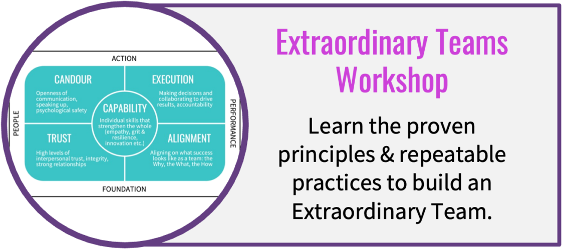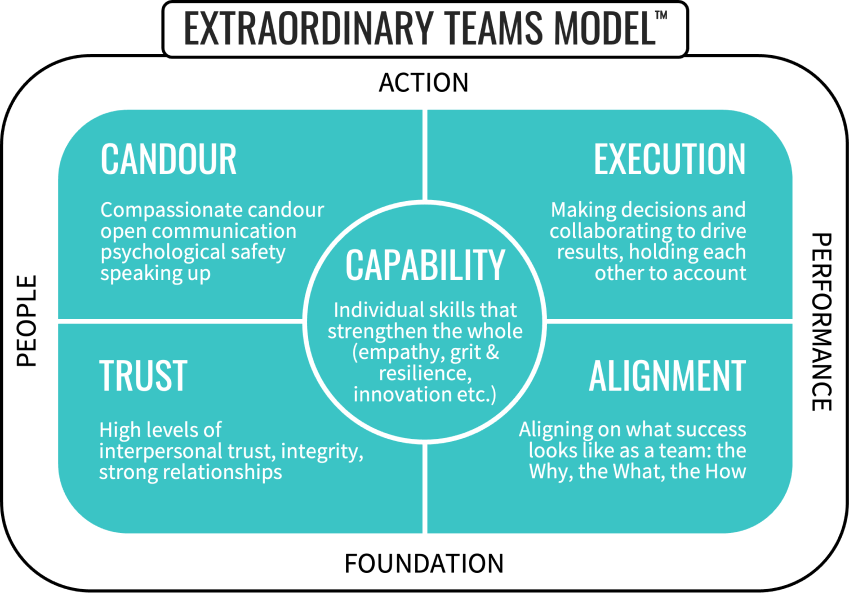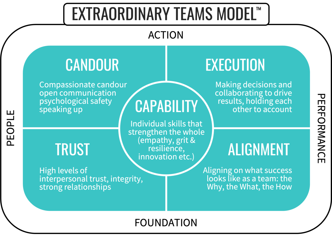The focus of Michelle and Shaun’s work with teams is summarised by our Extraordinary Teams Model™.